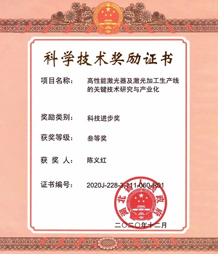 1988年12月,DB-1型二氧化碳激光打標(biāo)機(jī),湖北省科技進(jìn)步三等獎(jiǎng)