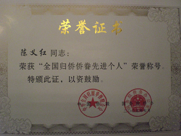 祝賀陳義紅當(dāng)選全國歸僑僑眷先進(jìn)個(gè)人