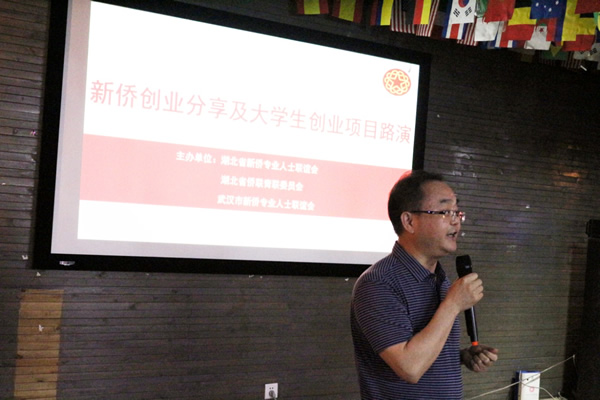 2016年7月20日下午,“湖北新僑創(chuàng)業(yè)分享及大學(xué)生項目路演”活動在華中科技大學(xué)青創(chuàng)空間舉辦,三位新僑嘉賓分享了自己的創(chuàng)業(yè)故事,四支大學(xué)生創(chuàng)業(yè)團(tuán)隊現(xiàn)場路演。該活動由湖北省新僑專業(yè)人士聯(lián)誼會、湖北省僑聯(lián)青聯(lián)委員會、武漢市新僑專業(yè)人士聯(lián)誼會主辦,湖北省僑聯(lián)副主席、省市新僑專業(yè)人士聯(lián)誼會會長陳義紅,輪值會長萬穎,湖北省僑聯(lián)、武漢市僑聯(lián)領(lǐng)導(dǎo)及40余名新僑嘉賓、媒體記者和大學(xué)生創(chuàng)業(yè)團(tuán)隊參加。