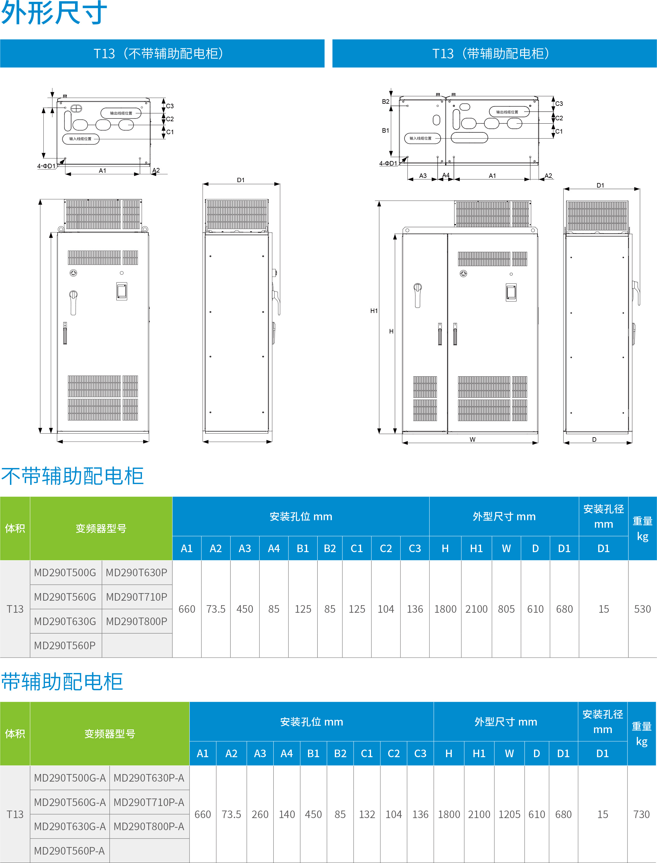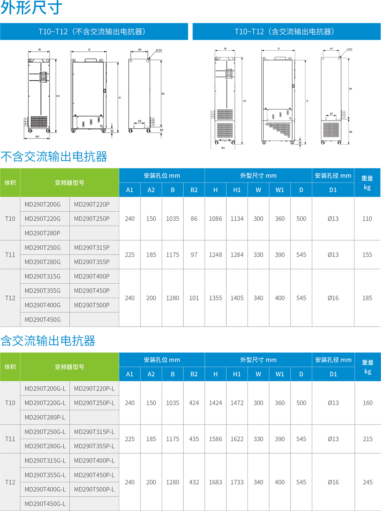 | 型號(hào) | MD290T45 G/55P(B) | MD290T55 G/75P(B) | MD290T75 G/90P(B) | MD290T90 G/110P | MD290 T110G/ 132P | MD290 T132G/ 160P | MD290 T160G/ 200P | |||||||||