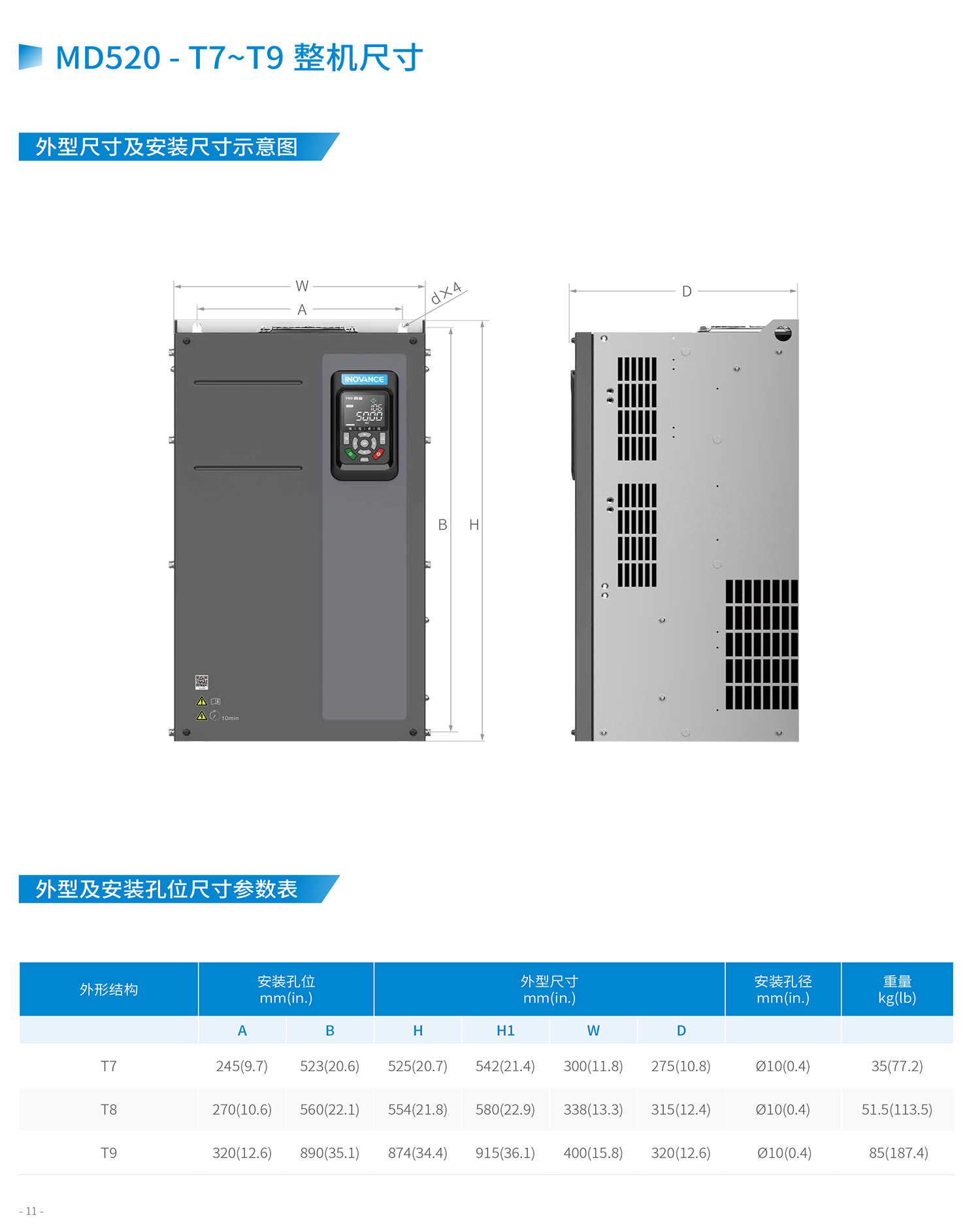 | MD520-2T22(B)(S) | T7 | 40.7 | 89.0 | 22.0 | 30.0 | 91.0 | 48.5 | 111.0 | 30.0 | 40.0 | 112.0 |