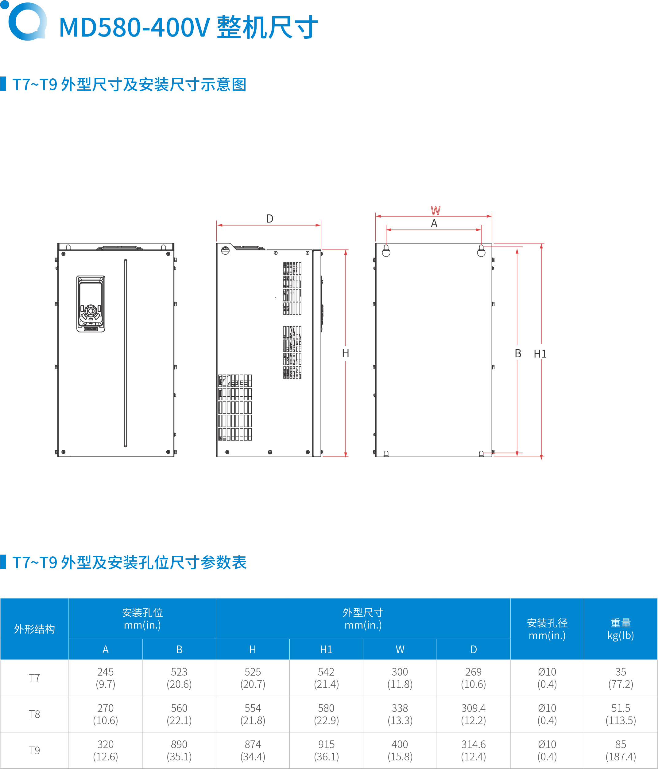 | MD520-2T18.5(B)(S) | T6 | 31.6 | 69.0 | 18.5 | 25.0 | 75.0 | 40.7 | 86.0 | 22.0 | 30.0 | 91.0 |