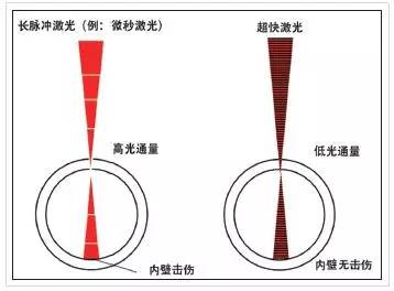 圖一:長脈沖激光及超快激光加工比較示意圖