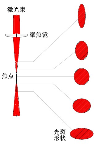 激光束光斑形狀:在焦點上是圓形的,離焦后帶點橢圓形。