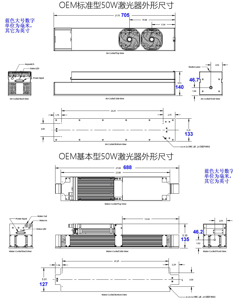所有激光器都是風冷激光器,兩種結構是OEM基本型、OEM標準型。