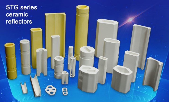 ST系列的陶瓷反射體坯體采用99% Al2O3制成坯體,經過適當?shù)臏囟葻疲员A艉线m的孔隙率和適當?shù)呐黧w強度。陶瓷反射體表面采用了全涂覆高反射率陶瓷全釉工藝,與鍍金反射體相比,其最大優(yōu)勢在于使用壽命極長,反射特性為漫反射。