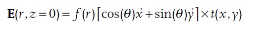 在模擬中,我們通過求解標量和矢量狀態(tài)下的波方程,重現(xiàn)了結(jié)構(gòu)光聚焦的結(jié)果。具體來說,對于漩渦光束,我們將平面波條件替換為以下光條件: