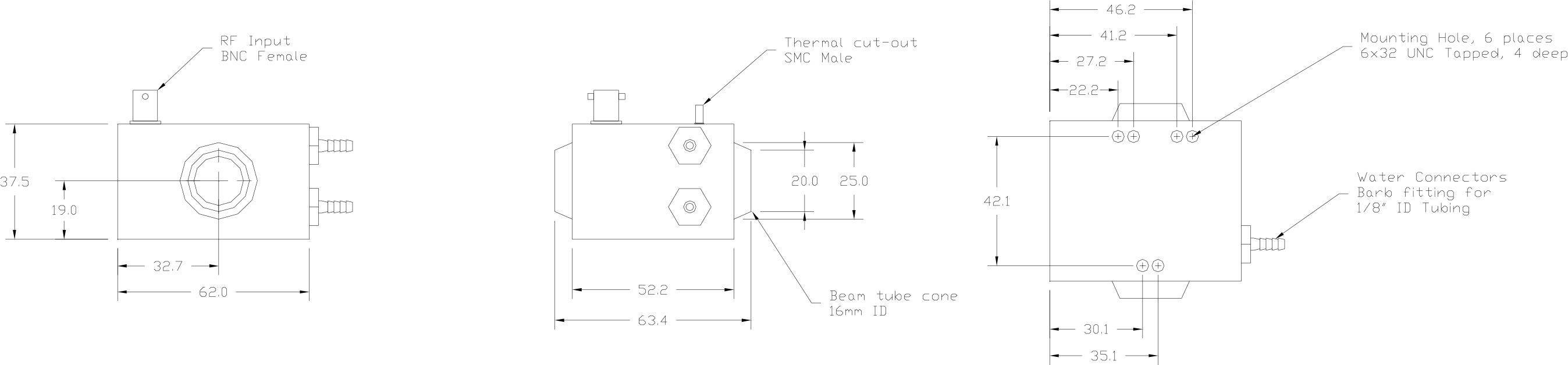 • 水冷通道材料:鋁(強烈推薦去離子水)