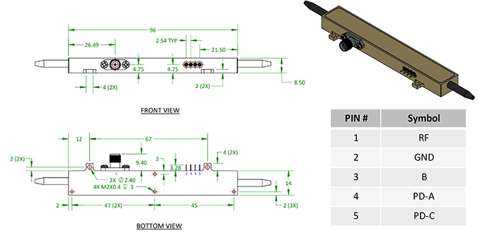 STOL-IM-850-20-PM85020205.5@10GHz-45V female87 x 14.5 x 10