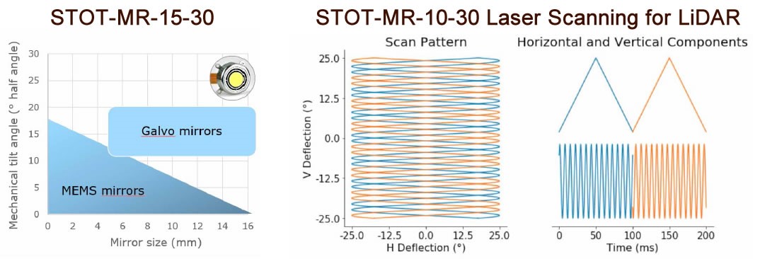 單個(gè)光學(xué)元件的2D光束偏轉(zhuǎn),可提供更大的光學(xué)掃描范圍和反射鏡尺寸