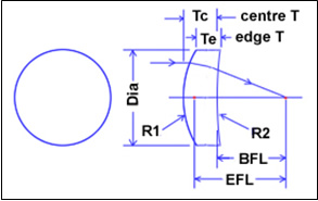| 型號(hào) | 材料 | 直徑mm/inch | 邊緣厚度mm | 鍍膜 | 有效焦距mm/inch |